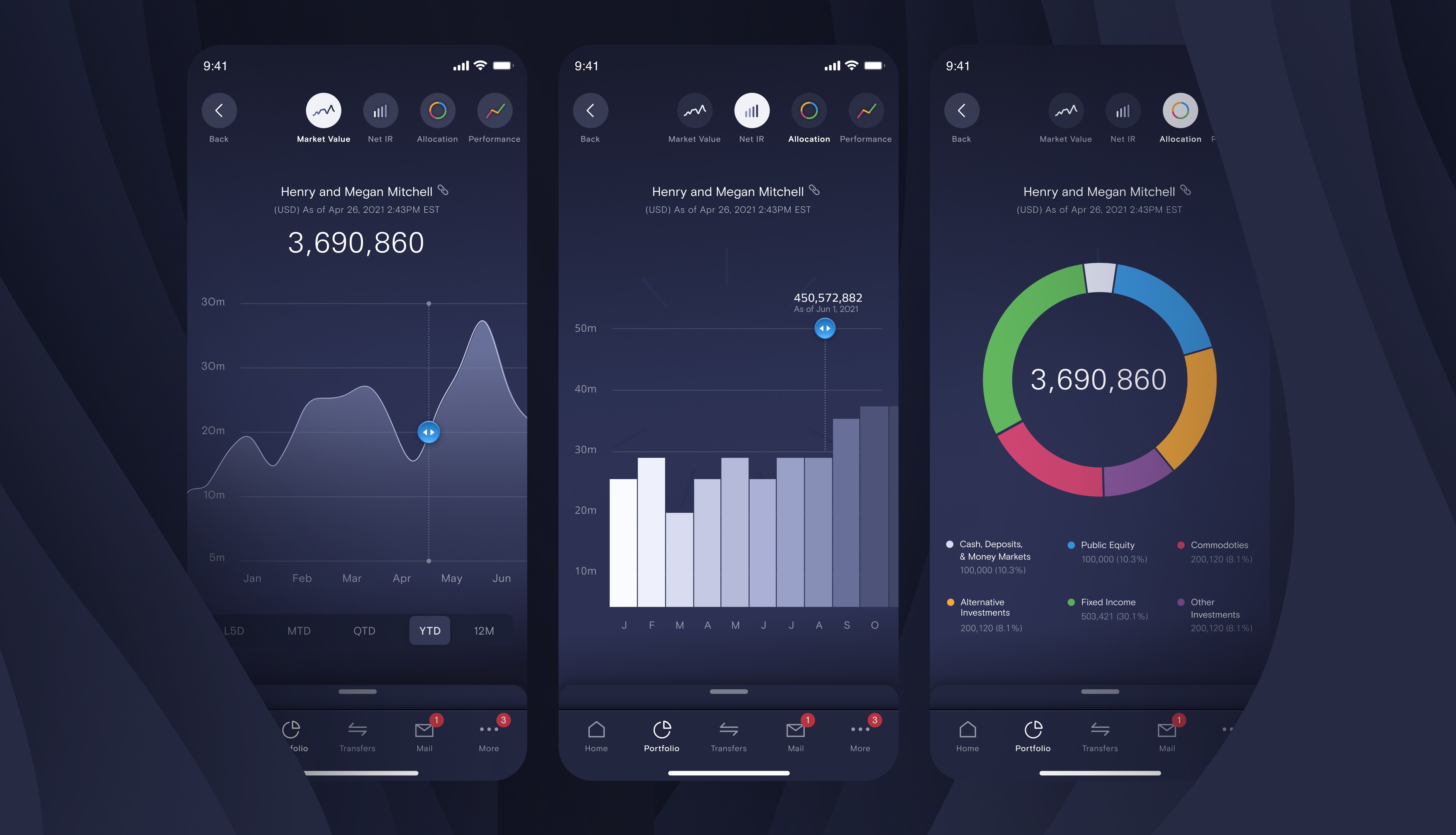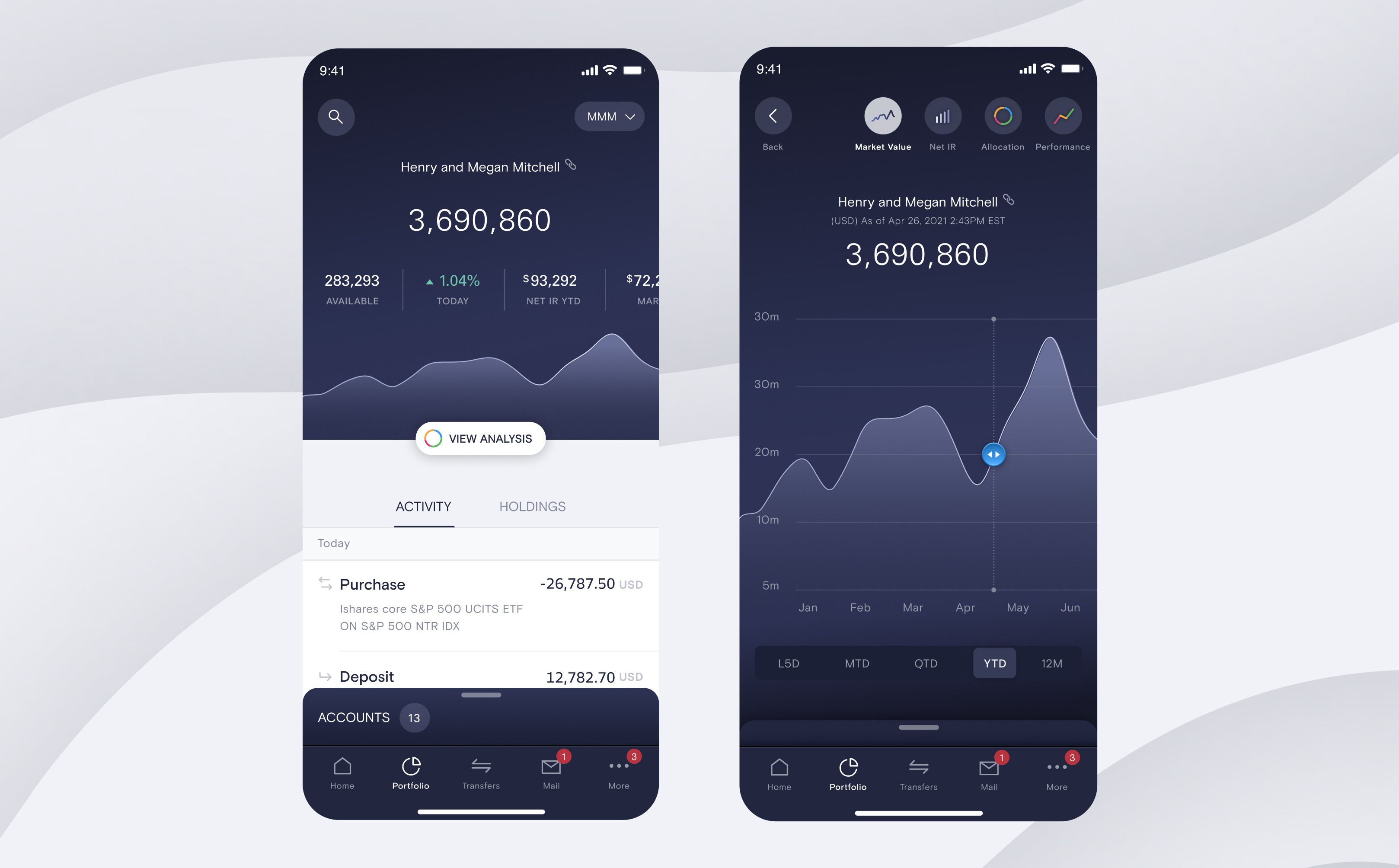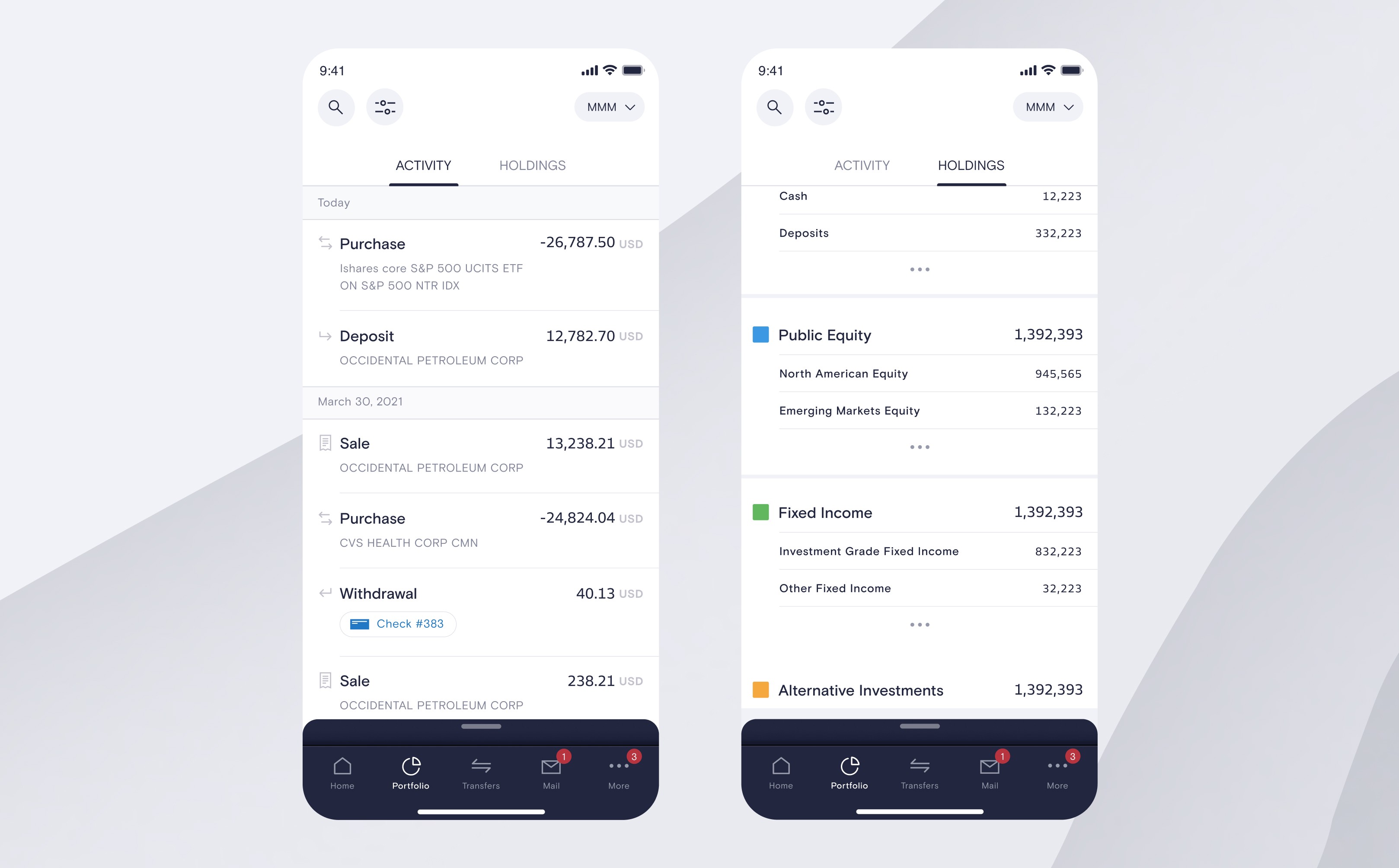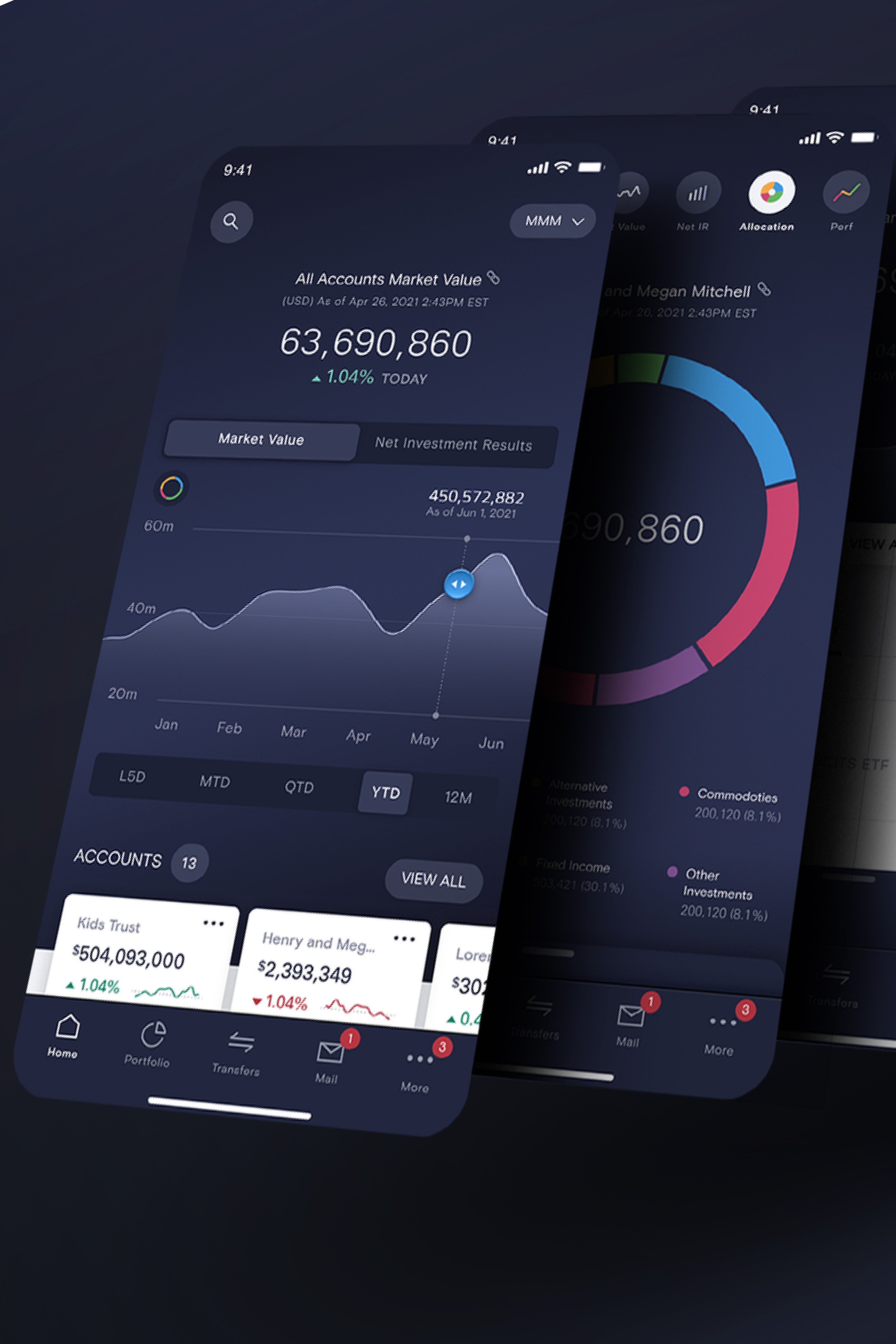 The legacy Private Wealth Management app had remained largely unchanged for years, resulting in an outdated experience that fragmented key activities like portfolio monitoring, trading, research, and advisor communication. The redesign introduced a modern visual identity, unified design system, and a more intuitive, connected mobile experience. Since launch, it has increased advisor–client digital engagement by 44%, reduced support calls by 19%, improved NPS, and saved advisors hundreds of hours through self-serve and collaboration tools.