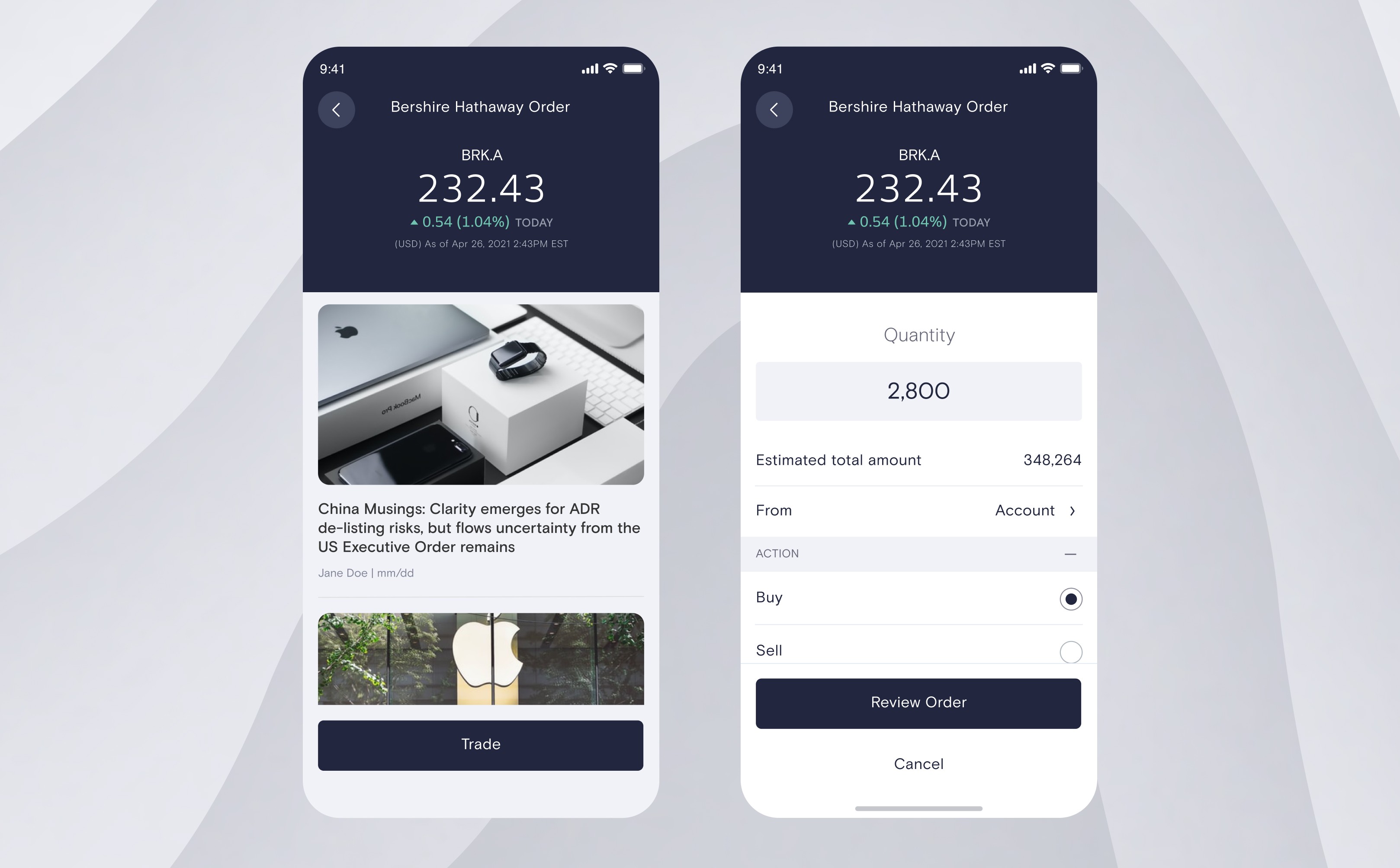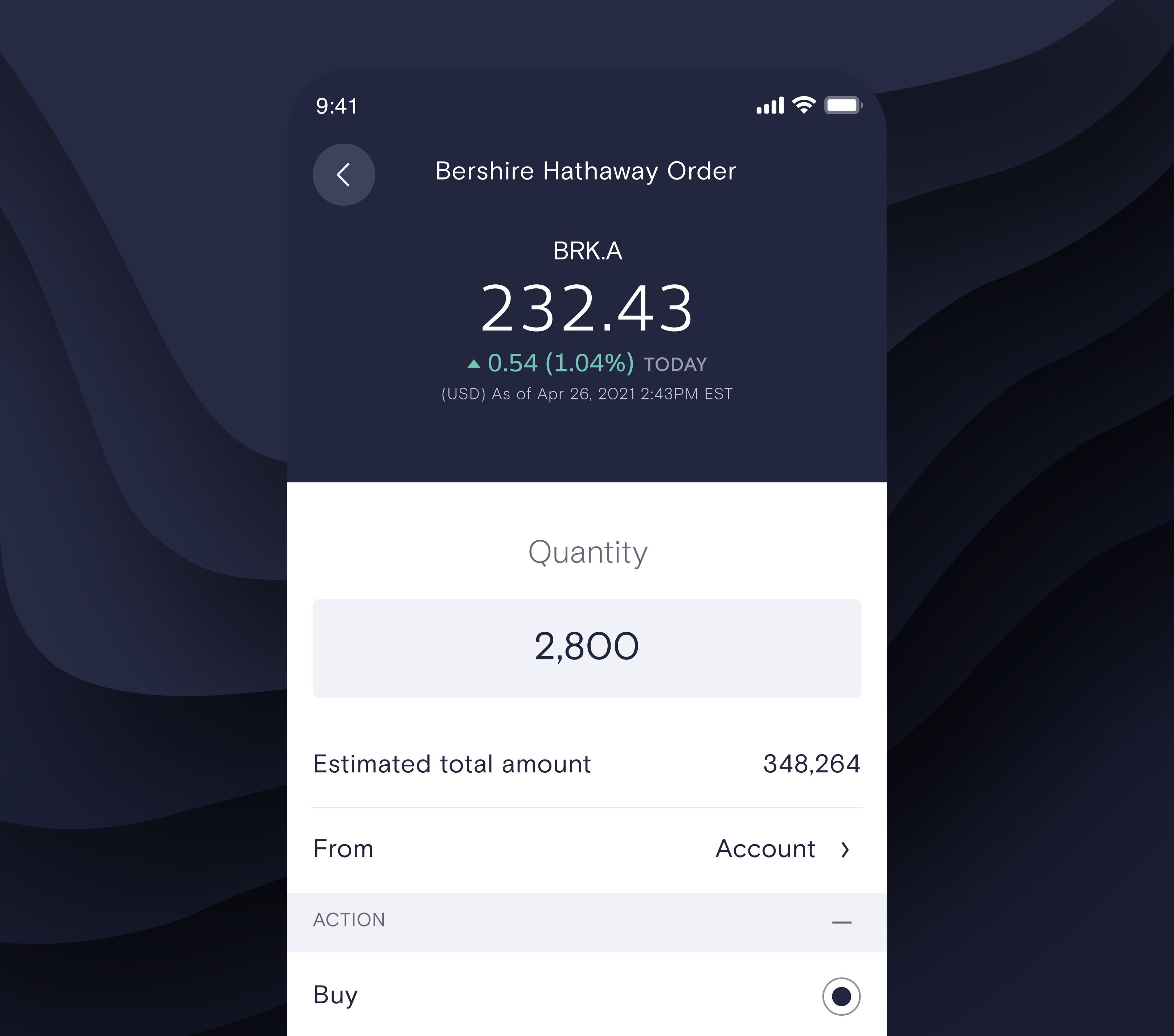 Execute brokerage trading of publicly listed securities, currencies, and options. One-click order entry from applicable locations around the mobile app, such as articles, quote details, and insights makes it easy to invest on-the-go.