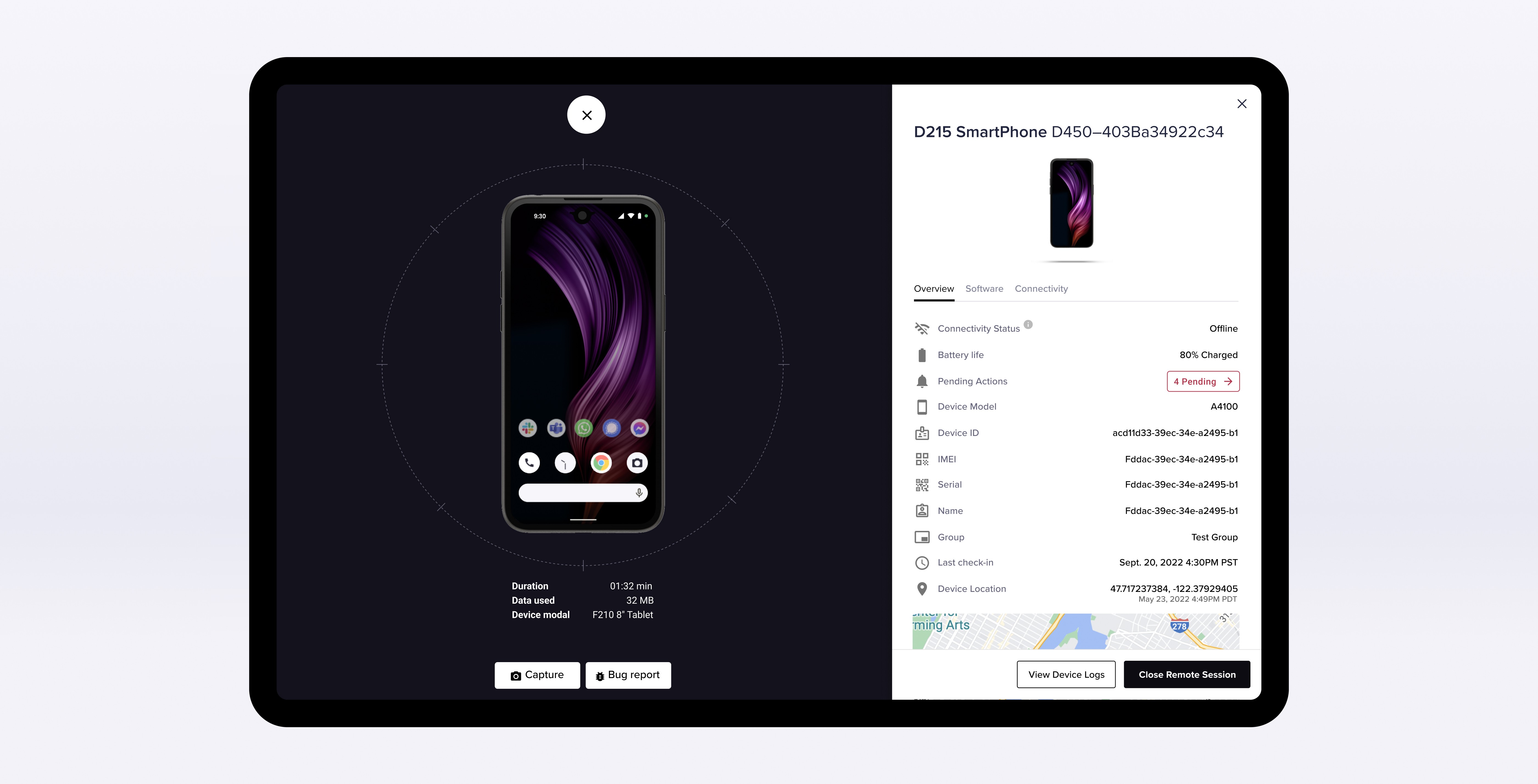 Get a 10k foot view of device fleets organized by deployment groups with all the latest activity, health metrics, KPI charting, status, and more. Easily traverse devices with the details side panel and manage them with bulk actions. Customizable deployment groups help users organize devices to match unique workflows, with granular user permissions, and device data collection at parent and child levels. Support end-users from a distance at scale with remote control using x-ray side-by-side, logs, and device details panels. Easily access documentation and support right from within Mason Controller – no more having two windows open. Contextual help links throughout the platform provide relevant support content within workflows.