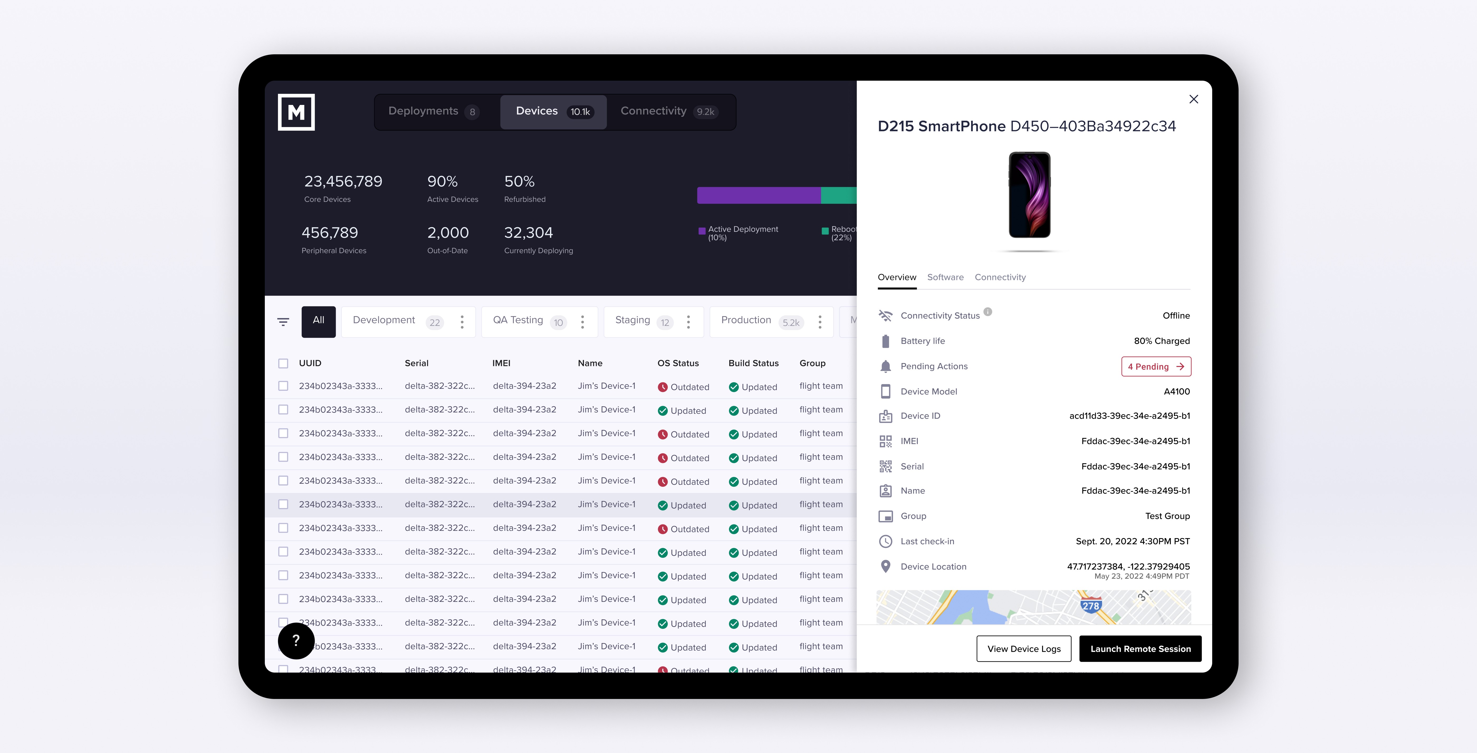 A scalable system that adapts as customers grow supported early product exploration and sales demos while seamlessly evolving into a powerful environment for device fleet management, CI/CD deployment, monitoring, troubleshooting, and product innovation.